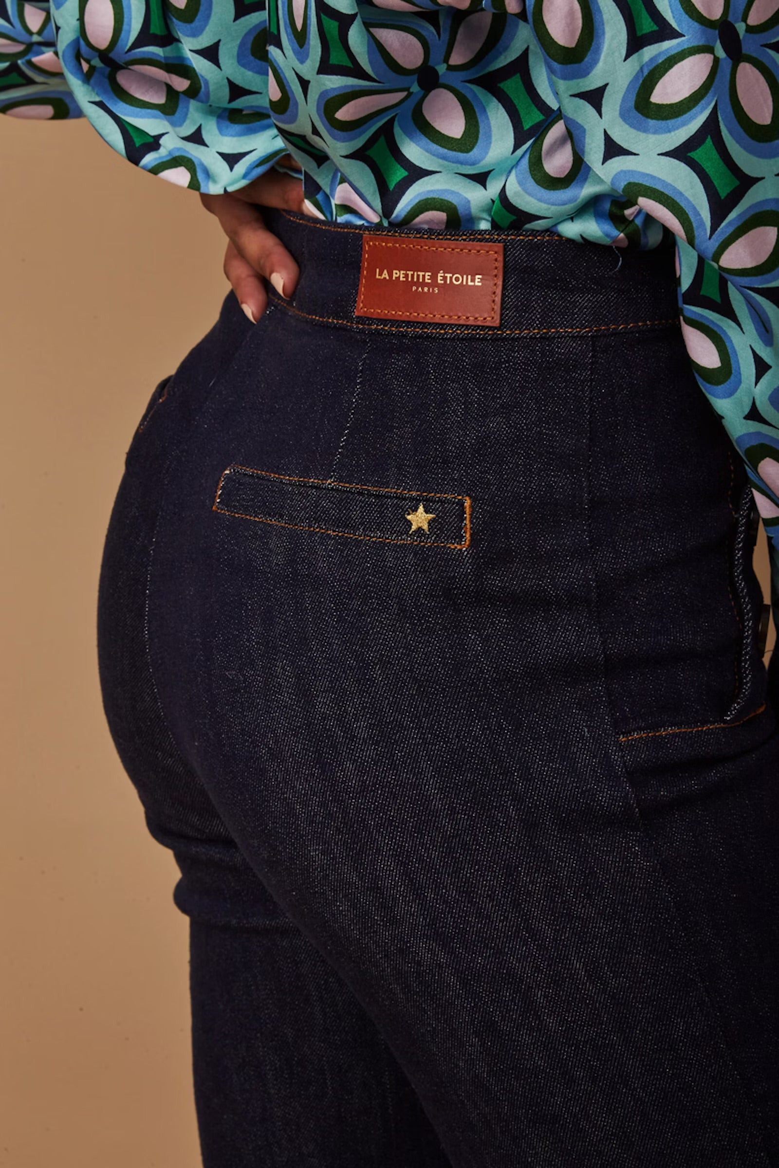 High-rise straight cotton-blend buttoned jeans by LA PETITE ETOILE for Women.